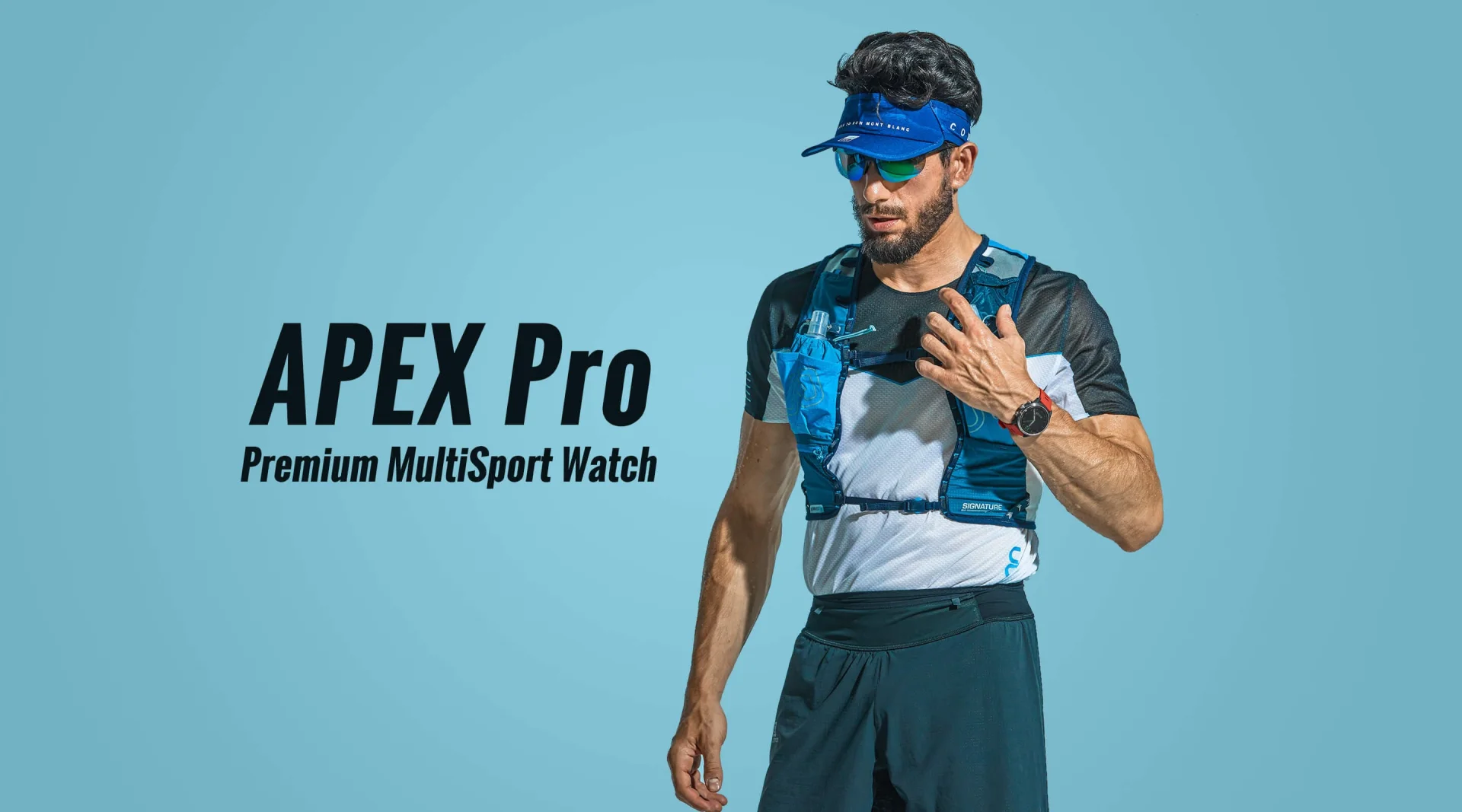 APEX系列是专为越野竞速设计的户外运动表,拥有轻量化的坚固表身、持久的续航能力、以及精准的户外数据。而APEX Pro则是这个系列中的最强者,在APEX基础上增加了血氧传感器以适应高原运动,使用了强化版的旋钮系统,手感也更出色。