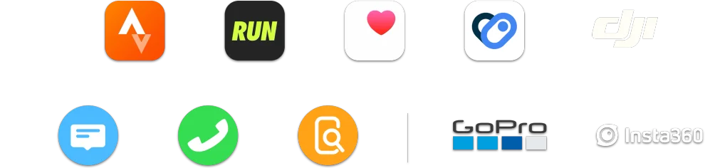 COROS 可连接多款 APP 同步数据,如 Strava、Apple Health,支持手表获取短信、电话提醒,控制使用运动相机——一切尽在腕上。