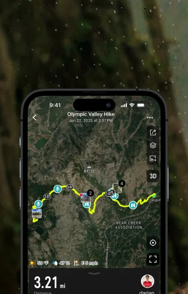 在 GPS 轨迹上查看照片、视频,精准定位户外探索的高光瞬间。