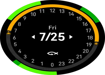 根据月球活动引起的潮汐变化,帮助判断鱼群最可能咬钩的时机。
