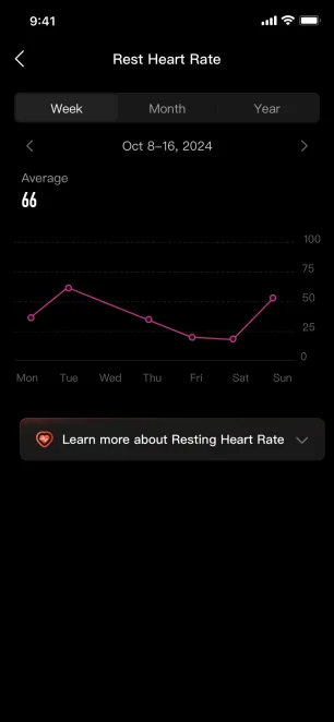 从夜晚睡眠中自然清醒后获取的静息心率,可反映身体状态是否异常。