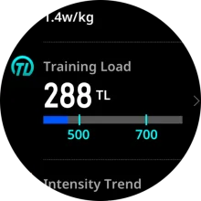 训练负荷将根据运动时长与强度,显示训练难度,数值越高,则训练越苦。