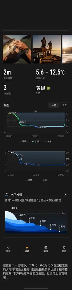 水下数据手表呈现,生成可视化图表与示意图,一目了然,作钓中随时清晰决策。