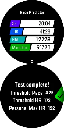 跑步模式支持自动计圈,可自定义的运动界面,能让你专注于关心的跑步数据,比如配速、爬升、心率、步频……进行耐力训练、间歇训练,实时数据抬手就能看。