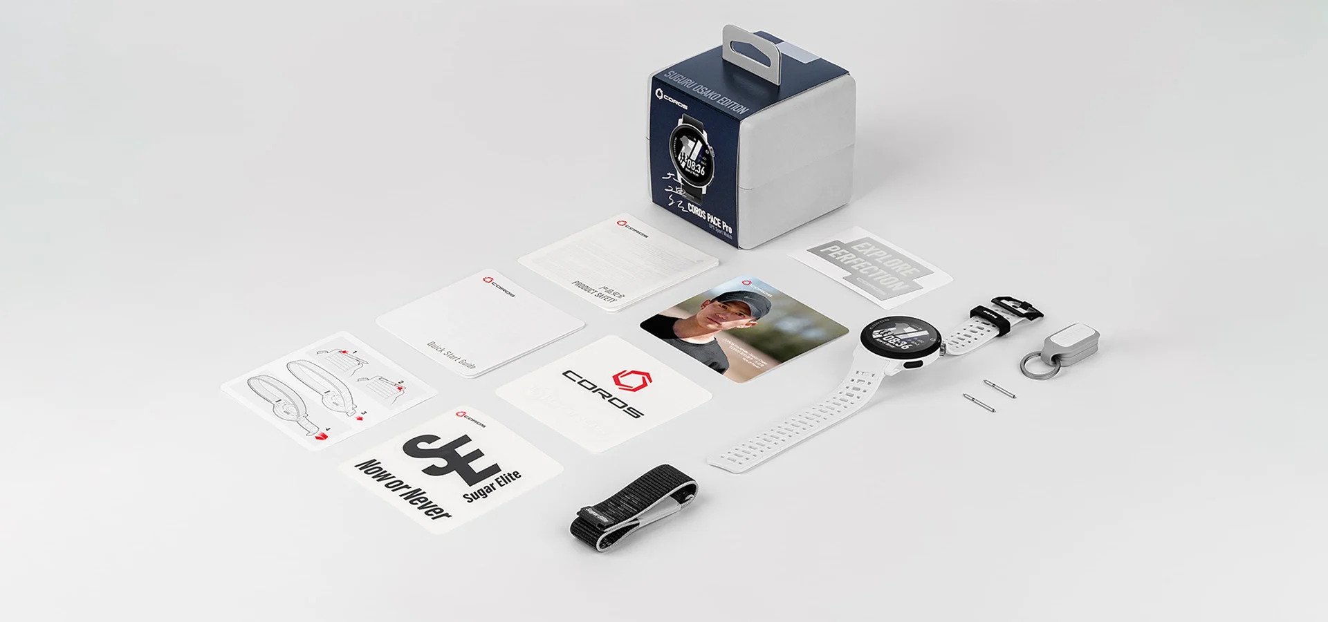 PACE Pro 大迫杰联名套装标配硅胶、织物 1+1 双表带。两条表带都印有 Now or Never 标语,织物表带上还带有 Sugar Elite 标识。 这不仅仅是一款联名手表,更是一个鼓励你拥抱「此刻」,感受「当下」的提示。